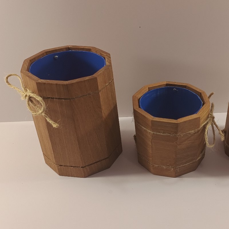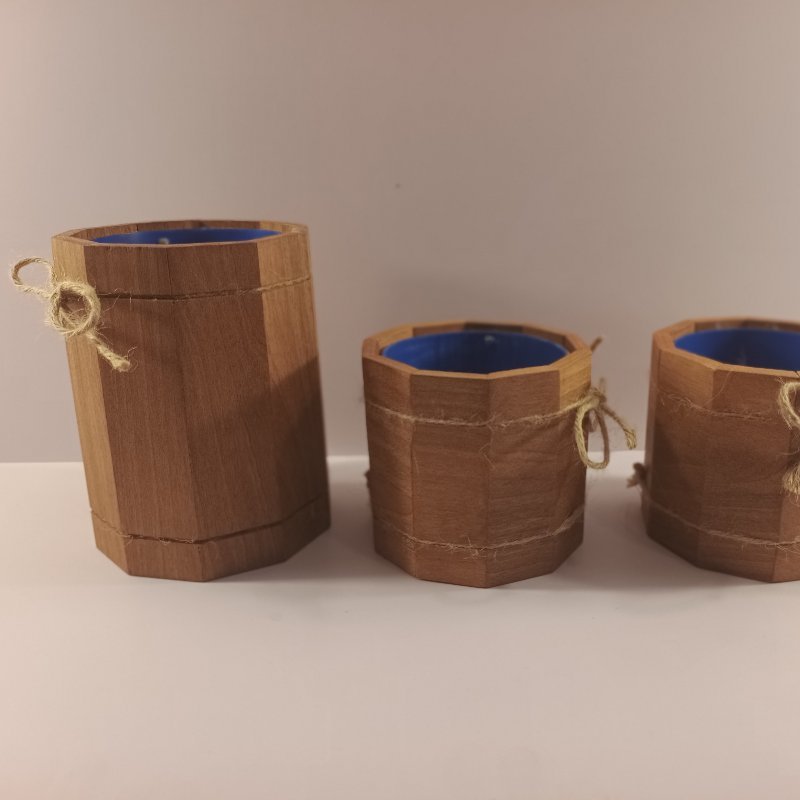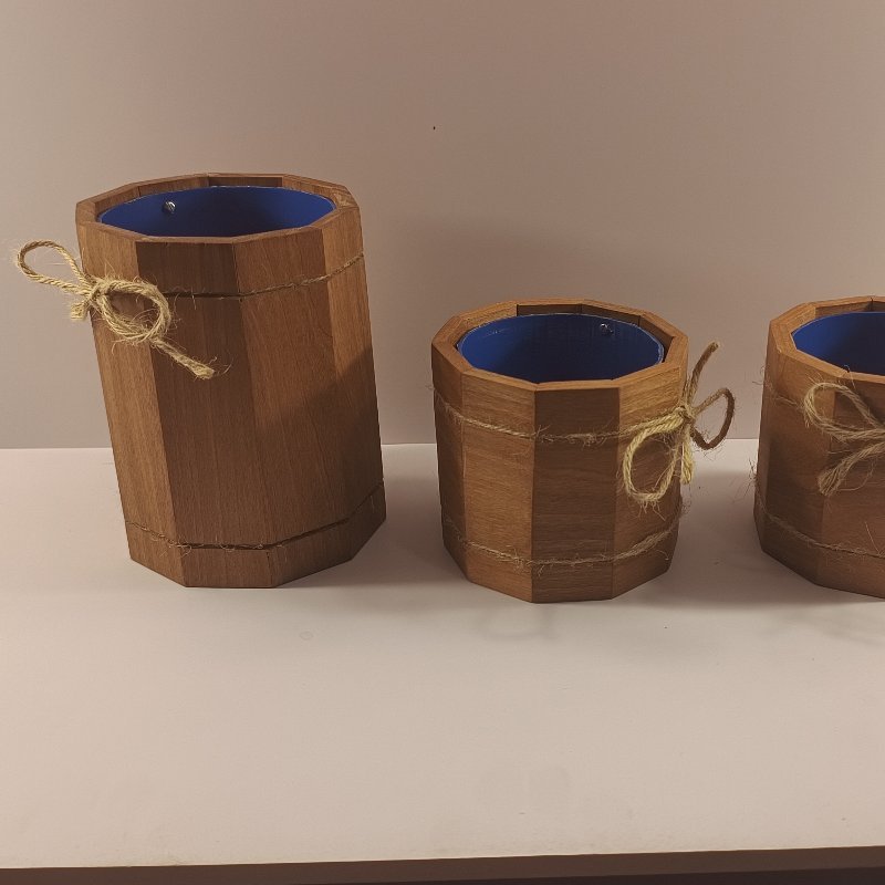 Maceteros de madera con base de plástico reciclado